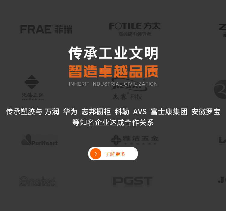東莞傳承塑膠電子有限公司創立于2008年,位于世界制造業名城廣東省東莞市。以傳承工業文明 ,智造卓越品質為已任。經過十余年發展沉淀致力于打造為塑膠標準件行業的優秀標桿企業。現有職員50余人,業務遍及60多個國家和地區,服務多家知名企業,如:科勒華為、歐司朗 、方太、中國建筑工程公司、AVS等。          公司主營產品有塑料膨脹管,塑料螺絲保護帽,配線器材等類產品。經過十余年的研發創新與管理實踐,在渠道供應鏈,產品設計,生產管理方面具備較高專業的技能及大客戶服務能力。截至2020年底,累計申請有產品專利三十余項,能根據客戶要求開發模具及定做非標產品,產品符合環保認證,UL阻燃認證,抗老化UV認證等。        公司目前已成為國內外多家知名企業的長期合作伙伴,我們秉承“客戶第一,誠信 ,創新,合作共贏”的經營理念,愿與您攜手共同打造更加優質的產品與服務。